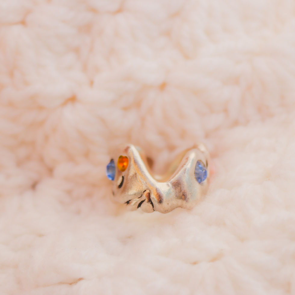 This pure sterling silver ring is emblleshed with faceted citrine and aquamarine gemstones.